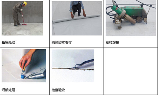 基層清理——鋪貼防水卷材——卷材焊接 ——細部處理—— 組織驗收